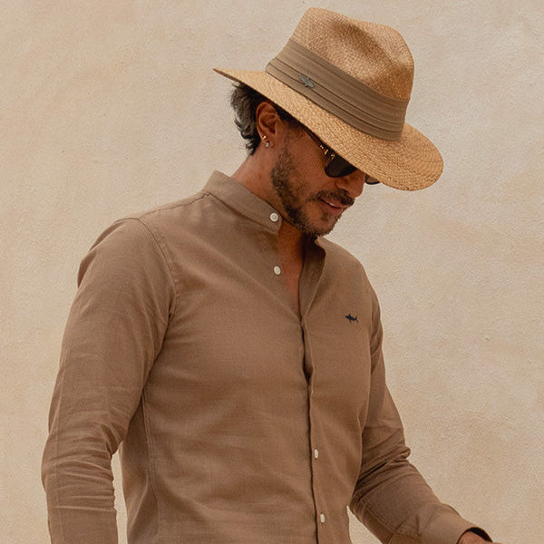 Sombrero 100% Colombiano de palma iraca. Cada pieza es cuidadosamente tejida a mano por talentosos artesanos colombianos, utilizando palma iraca de la más alta calidad. Disponible en tonos oscuros y claros, este sombrero refleja la riqueza cultural y el trabajo artesanal de Colombia.
