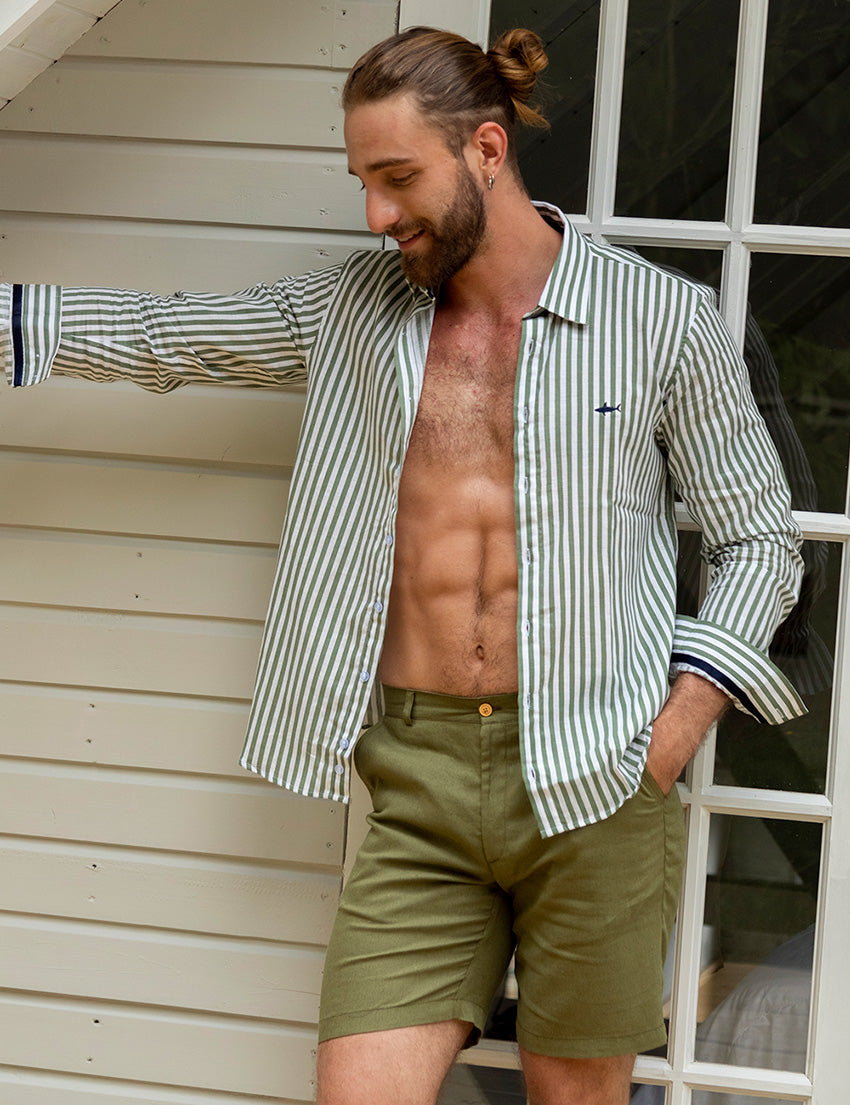 CAMISA NERU SALVADOR BLANCA RAYAS VERDE M